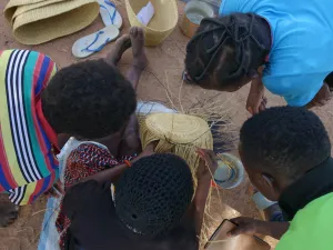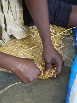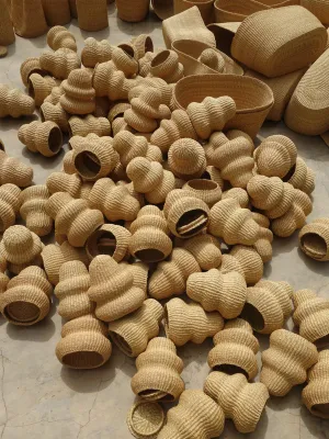 This seasonal work allows the craftswomen to combine their work as basket weavers with their work as farmers. Each weaver is independent. The handicraft centre we work with trains the weavers in groups for each new model and organises production according to the orders. The price of each basket is then decided collectively.