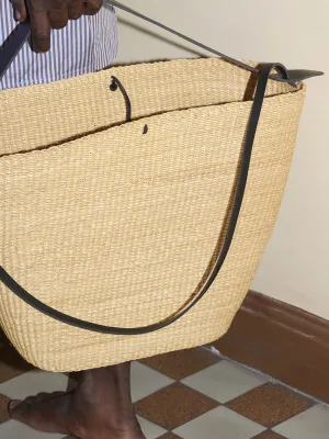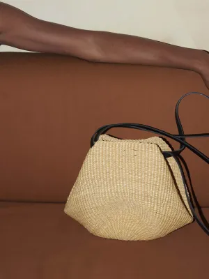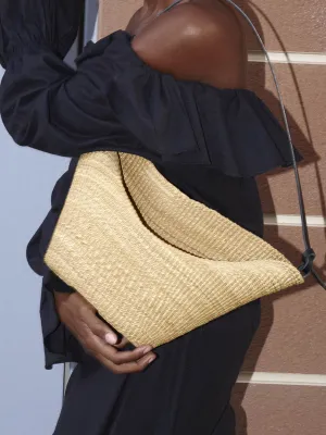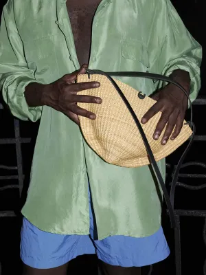 The volume is pinched, bent and folded to metamorphose the initial shape. We have studied millinery techniques and how straw can take on a new silhouette and retain it when moulded. This allows us to weave simpler shapes that we then transform in our workshop in France. The elasticity of the volumes becomes a structural element of the bag, guiding the principles of shape and of the bag closures. The straw moves with the body, the envelope is manipulated, so as to be flexible or firm. More about the Akamae series.